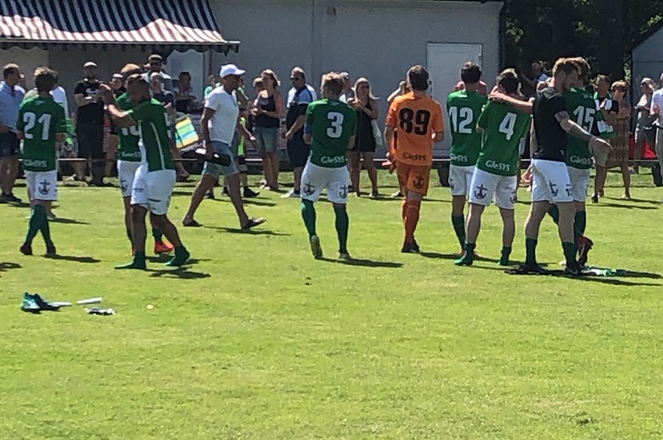Mål: 0-1 Besart (28 min) - 0-2 självmål Det utspelade sig ett hett derby på Stafsinge IP denna nationaldag, kanske inte spelmässigt utan mer en temperaturmässigt het eftermiddag på 28 grader, detta gjorde att matchkvaliten kanske inte var på högsta nivå! Är ju alltid lite olustigt att gå in i en ny match efter den så väl genomförda matchen senast mot Hittarp.....men vi fortsatte där vi slutade och gör en riktigt bra första halvlek, den där aggressiviteten och viljan gjorde att Stafsingespelarna såg väldigt olustiga ut och fick inte mycket många sekunder på sig med boll! Besart vara nära direkt att få den där drömöppningen efter 3 min, tror det är Simon som skarvar vidare och Bes kommer fri mot målvakt men boll precis utanför! Oliver har ett läge i den 6 min när Tobias M kommer loss på sin vänsterkant och inlägg men avslut över! I den 13 min så skapar vi ett riktigt fint klapp-klapp anfall, Simon hittar Bes ännu en gång men målvakt räddar till hörna som även den blir farlig! Stafsinge bästa och enda läge i första halvlek var när Joel få till en riktig höjdare till bakåtpass till Anton som lyckas trampa ner bollen, men bollen hamnar SIF-spelare som testar men via en vinbergare rullar bollen precis utanför stolpen till hörna! Vi får vänta till matchminut 28 innan vi tar ledningen och det är vår målkung Besart som ännu en gång gör mål, via Oliver på högerkanten och Simon kunde Bes iskallt rulla in 0-1! I den 36 minuten utökar vi till 0-2, en hörna från Simon som boxas ut från målis men på egen spelare i mål! Självklart positiva tongångar i halvtid och inte minst väldigt varmt, vid en sån här ledning vet man att motståndare kommer flytta upp allt, en tidig reducering hade nog skakat oss! Men så blev inte fallet, vi blev väl lite omedvetet nertryckta men Stafsinge hade inte förmågan att hota oss idag, vi har fått utdelning för vårt slit och äntligen börjar det ge resultat med trots att vi spelar 3-5-2! Nu får killarna välförtjänt ledighet över helgen innan nästa veckas drabbning mot Eslöv på lördag 13.30 på Vinåvallen!