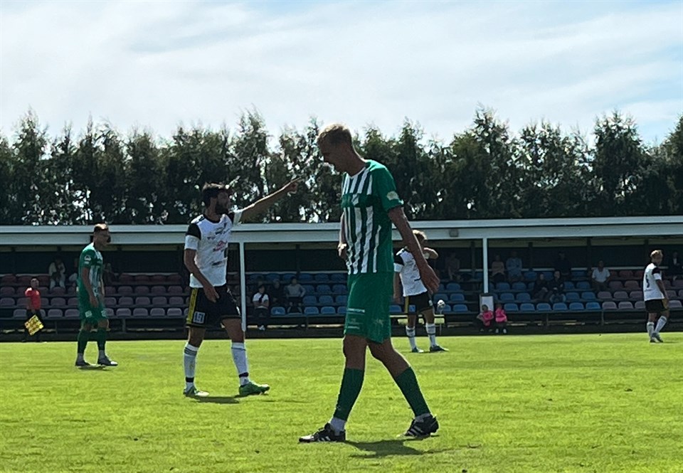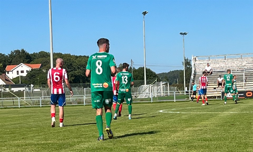 OMGÅNG 18 Mål: 0-1 (63 min) - 1-1 Joel (75 min) Det blev oavgjort i dagens Hallandsderby mot IS Halmia, en match som kunde sluta precis hursomhelst! Vi har några superlägen i slutet av matchen men samtidigt så har Halmia sina lägen också så ett oavgjort slutresultat känns ganska okej för vår del ändå! Vi var millimeter från en drömöppning redan efter 3 min, en lång boll mot straffområdet som Mackan vinner, passar Noah som blev helt fri men avslutet med vänstern går utanför! Halmia som hade en kvick ytterspringare kommer loss i den 10 min, hårt inlägg mot straffområde men boll rensas bort! Vi har en bra omställning i den 20 min, Mackan passar Sebbe men avslut rakt på Halmias duktiga målvakt! I den 32 min kom Halmias bästa läge, ett inkast och inlägg från höger där spelare får öppet mål men tur för oss så letar sig boll över målet! Vi var lite skakiga och slarvade, i anfallet efter sjabblar vi och forward avslutar en bra bit utanför straffområdet, boll under Axel i mål och boll rullar mot öppet mål men Arben dyker upp i sista sekund och räddar boll på mållinjen! Precis innan halvtid får Gabbe ett bra läge när han får bollen i djupet, mot mål men avslut räddas av målvakt! Vi får vänta till mitten av andra halvlek innan det blev mål, i den 63 min så slarvar vi på offensiv planhalva, Halmia ställer om och vi hamnar i underläge, boll i djupet till forward som iskallt rullar in 0-1 under Axel! Men vi kommer tillbaka målmässigt i den 75 min, en kort hörna och Arbinho ser Joel på bortre som blev väldigt fri och gör 1-1! Några minuter senare kommer Rasse loss och fint avslut men sjuk räddning av målvakt, i den 80 min så får vi hörna och boll lägger sig bara och hade nån bara dykt upp och avslutat nån tiondel tidigare så hade vi tagit ledningen! Sista chansen får Mackan när han får bollen av Sebbe men målvakt har en bra dag och räddar även detta! Med tanke på vår slutforcering så är det lite surt att vi inte tar alla poäng, vi var tacksamma över poängen på Örjans Vall med en storspelande Victor i mål och idag hade Halmia en duktig målvakt! Nu åker vi upp till Kongahälla på lördag och då kräver vi revansch efter vårens förlust på Vinåvallen!