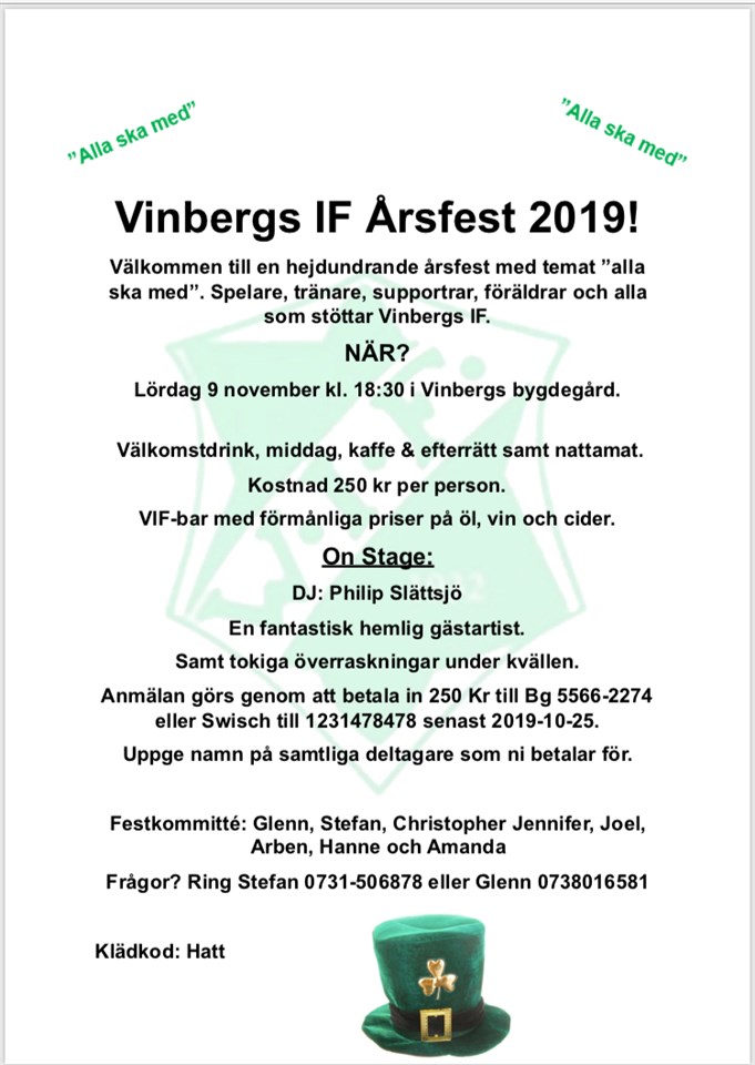 Missa inte att anmäla Er till Årsfesten 2019.
