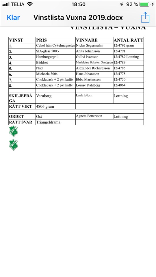 Här är vinst listan för vuxna Påskpromenaden 2019